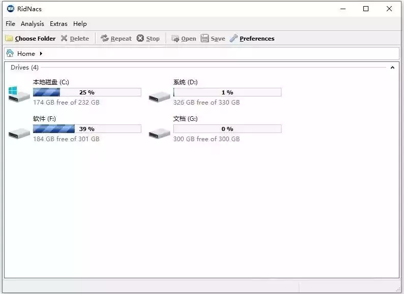 3、ridnacs通常比其他类似磁盘分析仪更简单,几种格式的导出分析,它不包含任何高级选项。