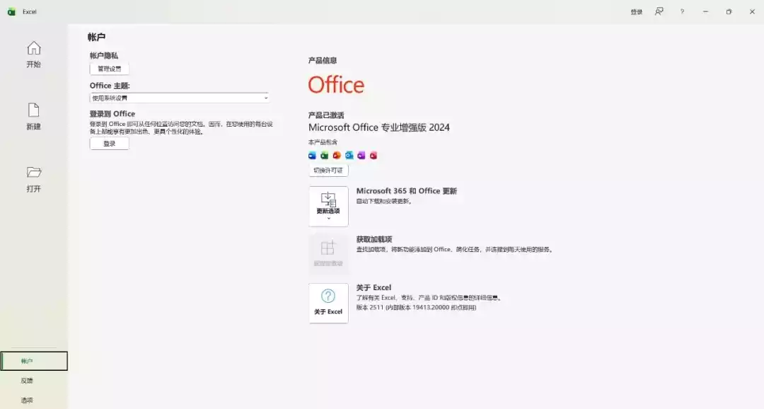 激活过程稍微要等几分钟,看到“激活成功”提示后,就可以打开 Office 检查啦——进入账户页,你会看到醒目的“已激活”状态,稳稳的!