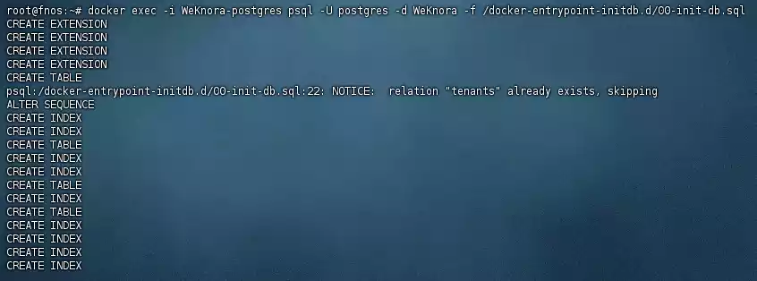 1 | docker exec -i WeKnora-postgres psql -U postgres -d WeKnora -f /docker-entrypoint-initdb.d/00-init-db.sql |