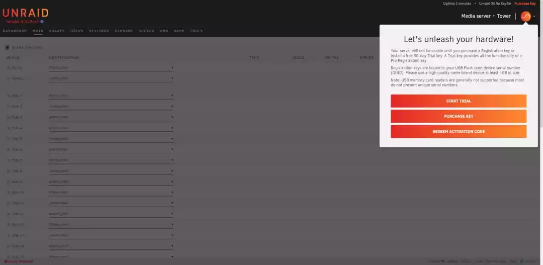 刚开始接触Unraid的萌新用户不建议一安装完就购买,建议使用一段时间熟悉系统以后再按需要购买,避免盲目消费。