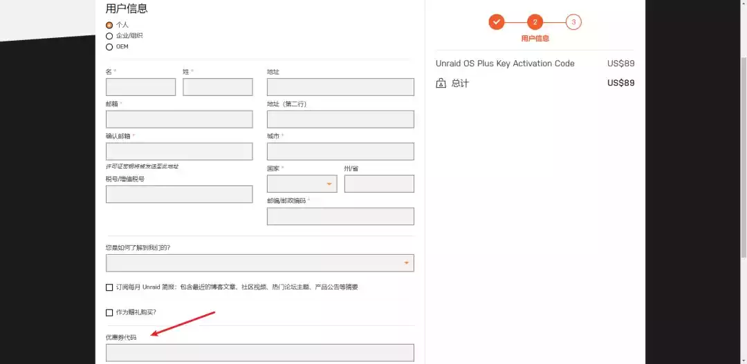 填写信息,注意邮箱别填错了(这里下面可以填优惠码)