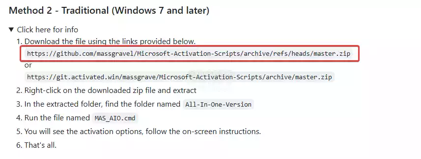 使用「TSforge」激活工具也非常简单,你可以在 Github 项目里面下载 master.zip 文件,然后解压出来用 PowerShell 脚本运行。
