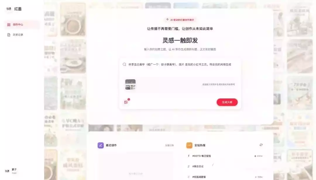 - 一键生成图文:用户只需输入一句话的主题,即可快速生成小红书图文内容,包括封面页和多页内容大纲。