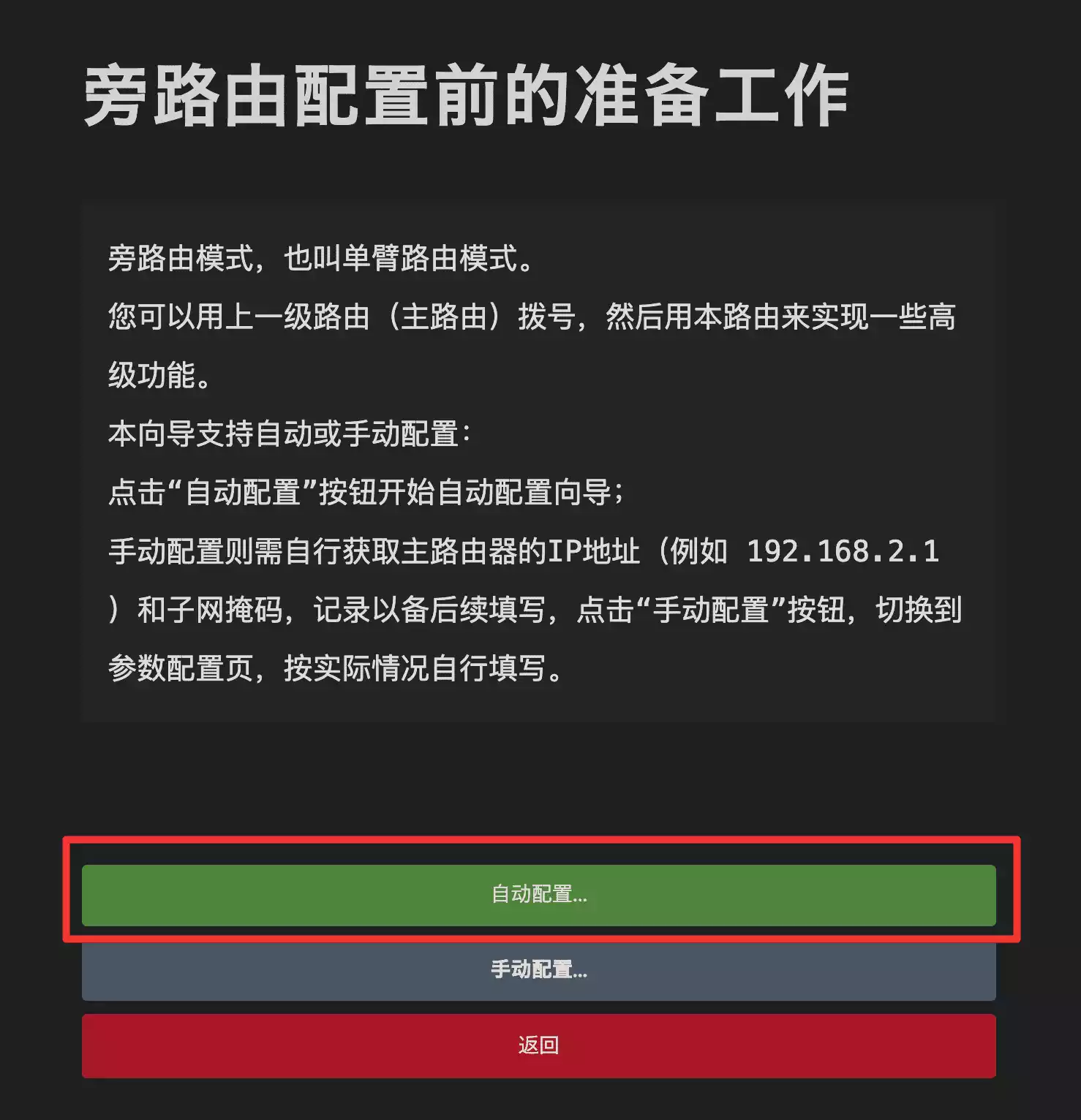 点击 配置为旁路由