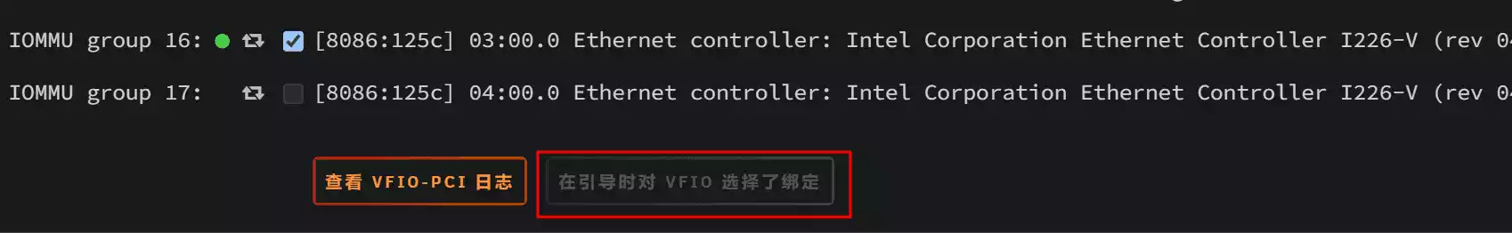 里勾选需要直通的网卡,重启生效。