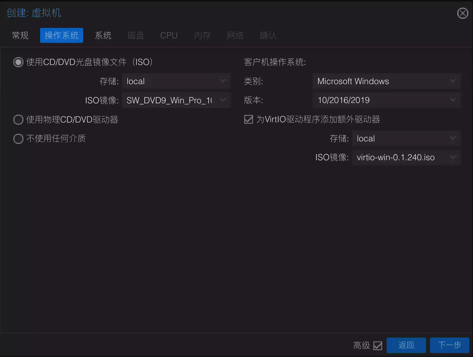 本篇以安装 Windows 10 为例,介绍如何在 PVE 中安装 Windows 虚拟机。