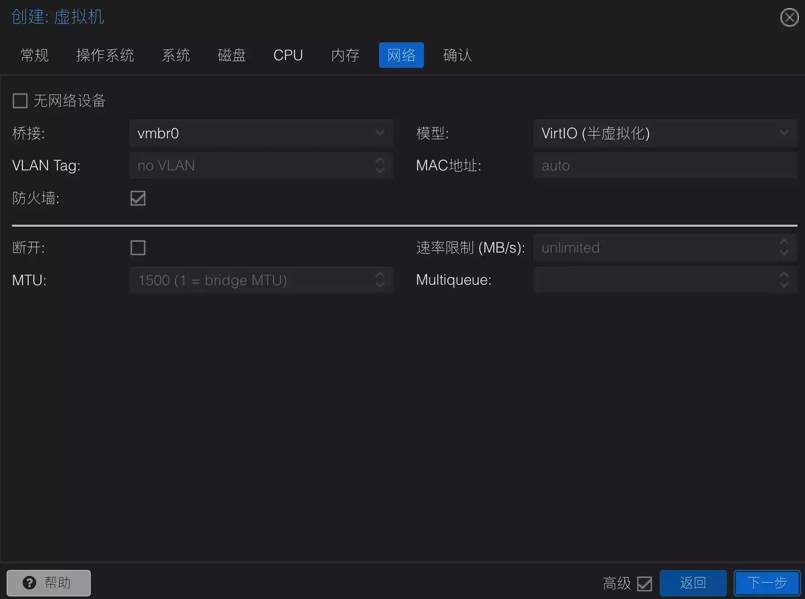默认都会有一块桥接的虚拟网卡,需要手动安装 VirtIO