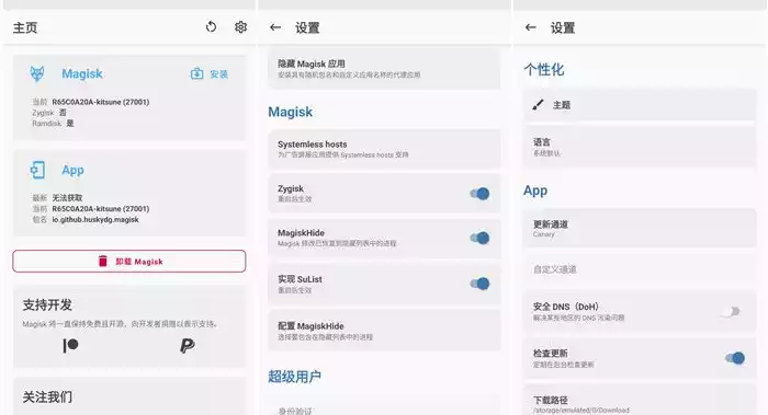 排除列表/sulist三个开关,然后重启手机一次。开机后进入面具设置,检查上面的三个