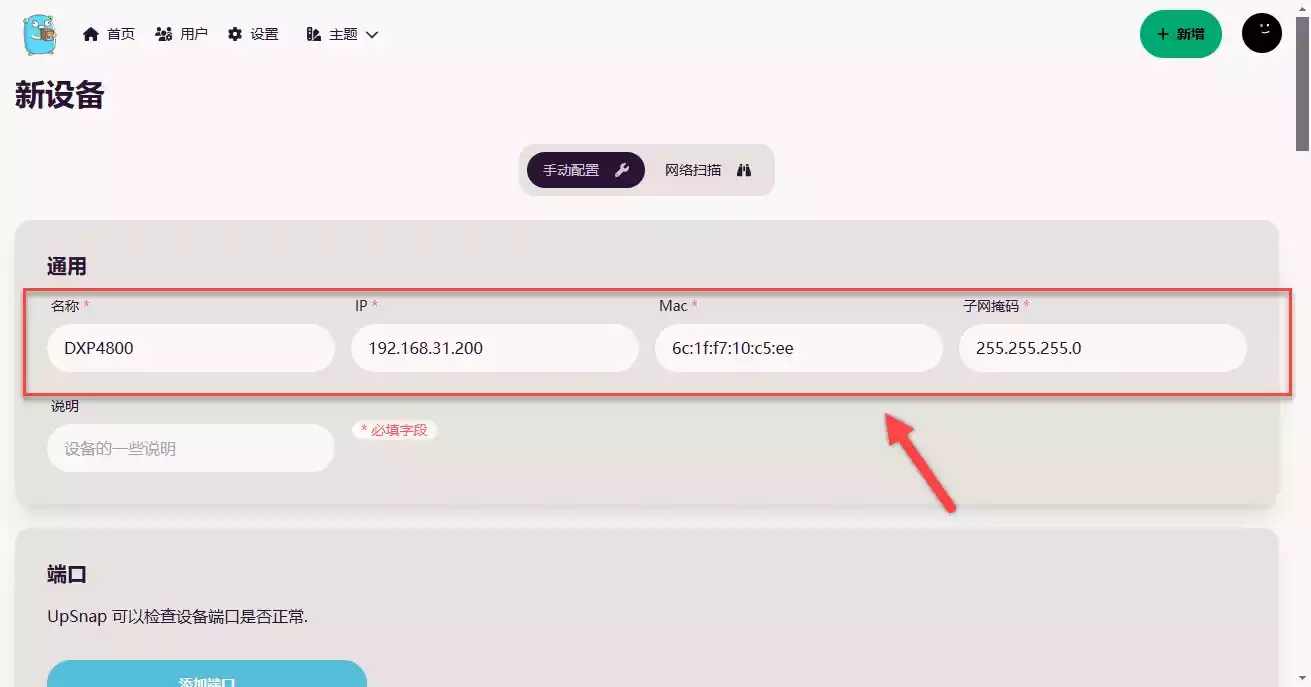 界面访问端口为 8090,这里网络要选 host ,不然好像唤醒不了设备